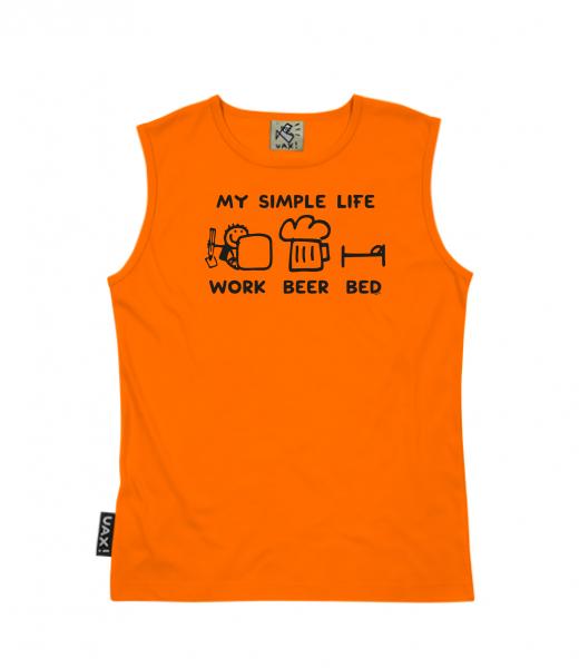 We make sustainable UAX clothing! - hand sewn in the Czech Republic uaxMen uaxAll productsT-shirtsMUSCLE SHIRTdesign 1211 - MY SIMPLE LIFE WORK BEER BEDSIGNAL ORANGE