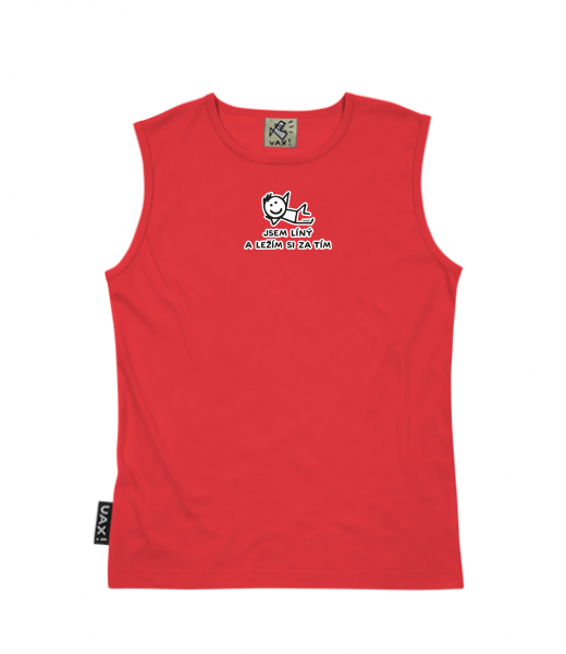 Men's sleeveless MUSCLE SHIRT for man with design 1217 JSEM LÍNÝ A LEŽÍM SI ZA TÍM in color RED