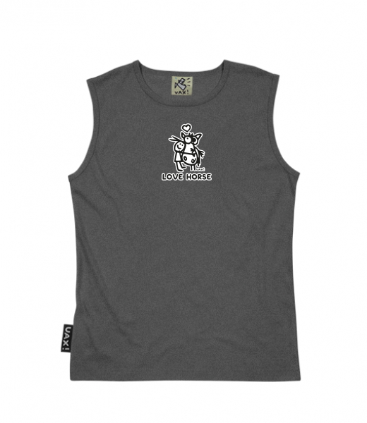 Men's sleeveless MUSCLE SHIRT for man with design 1219 LOVE HORSE in color GRAFIT