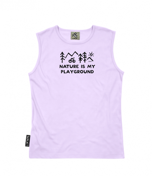 Men's sleeveless MUSCLE SHIRT for man with design 1223 NATURE IS MY PLAYGROUND in color LAVENDER