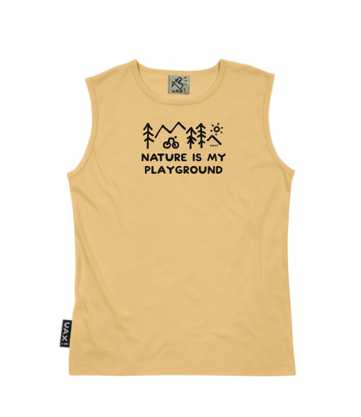 Men's sleeveless MUSCLE SHIRT for man with design 1223 NATURE IS MY PLAYGROUND in color MUSTARD