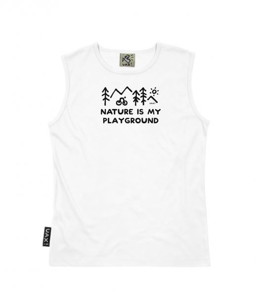 Men's sleeveless MUSCLE SHIRT for man with design 1223 NATURE IS MY PLAYGROUND in color WHITE
