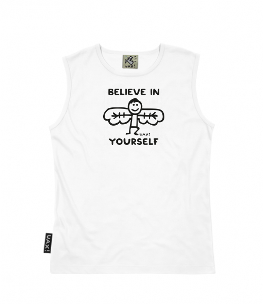 Men's sleeveless MUSCLE SHIRT for man with design 1228 BELIEVE IN YOURSELF in color WHITE