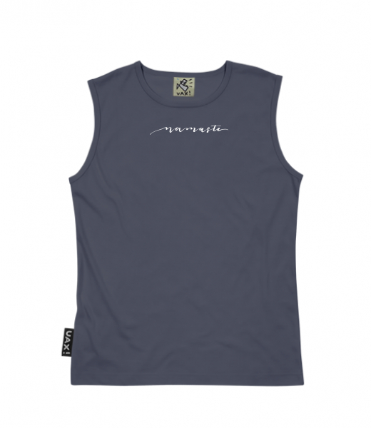 Men's sleeveless MUSCLE SHIRT for man with design 1234 NAMASTE in color GRAY INK