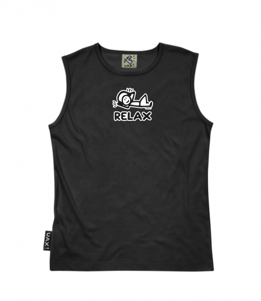 Men's sleeveless MUSCLE SHIRT for man with design 1236 RELAX in color BLACK