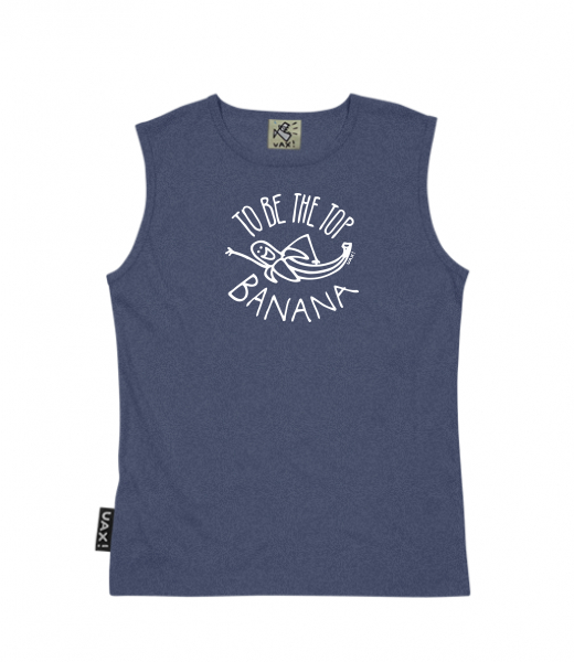 Men's sleeveless MUSCLE SHIRT for man with design 1238 TO BE THE TOP BANANA in color JEANS