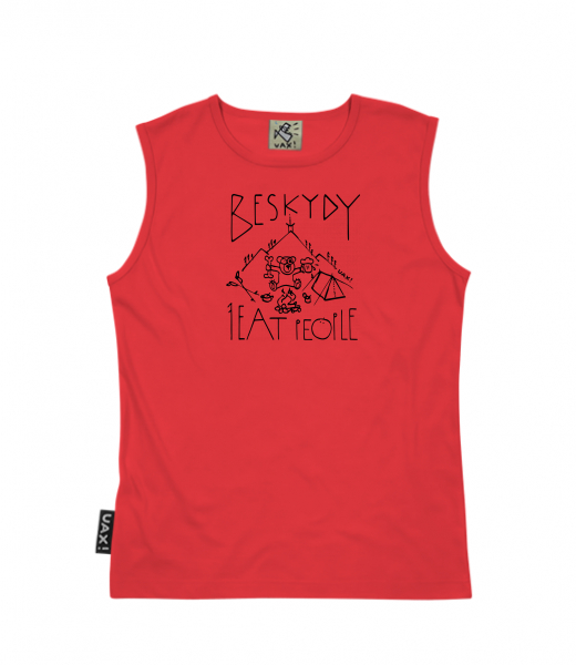 Men's sleeveless MUSCLE SHIRT for man with design 1241 I EAT PEOPLE BESKYDY in color RED