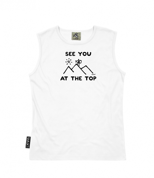 Men's sleeveless MUSCLE SHIRT for man with design 1263 SEE YOU AT THE TOP in color WHITE