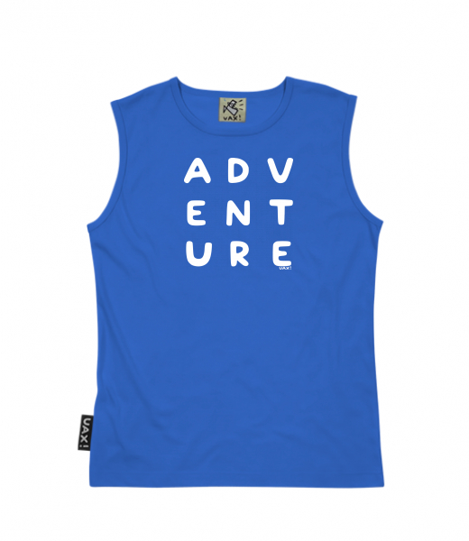 Men's sleeveless MUSCLE SHIRT for man with design 1270 ADVENTURE in color ROYAL BLUE