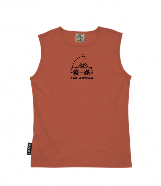 Men's sleeveless MUSCLE SHIRT for man with design 1284 CAR-ANTENA in color TERRA