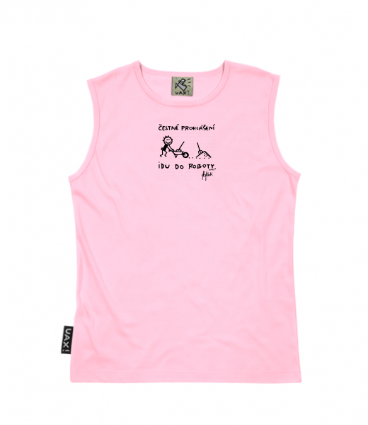 Men's sleeveless MUSCLE SHIRT for man with design 1303 ČESTNÉ PROHLÁŠENÍ IDU DO ROBOTY in color BABY PINK