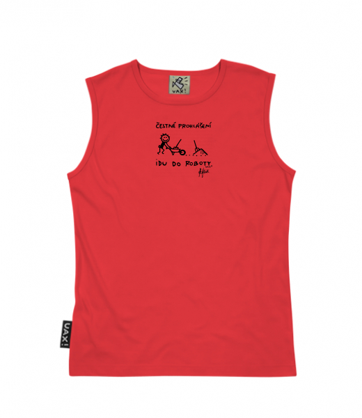 Men's sleeveless MUSCLE SHIRT for man with design 1303 ČESTNÉ PROHLÁŠENÍ IDU DO ROBOTY in color RED