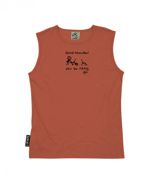 Men's sleeveless MUSCLE SHIRT for man with design 1304 ČESTNÉ PROHLÁŠENÍ JDU DO PRÁCE in color TERRA