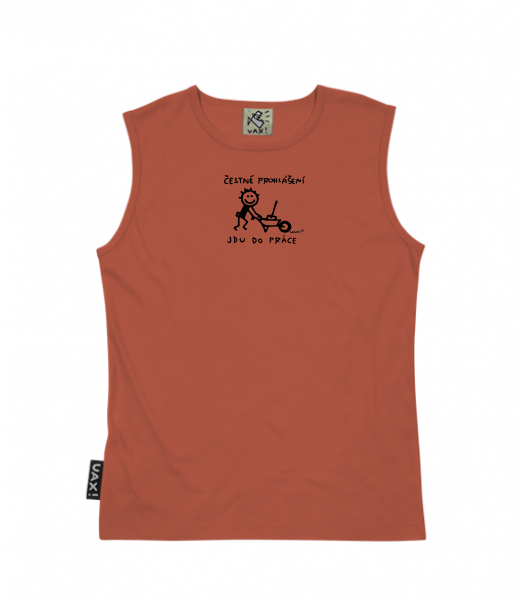 Men's sleeveless MUSCLE SHIRT for man with design 1305 ČESTNÉ PROHLÁŠENÍ JDU DO PRÁCE 2 in color TERRA