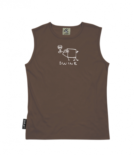 Men's sleeveless MUSCLE SHIRT for man with design 1323 SWINE in color CHESTNUT