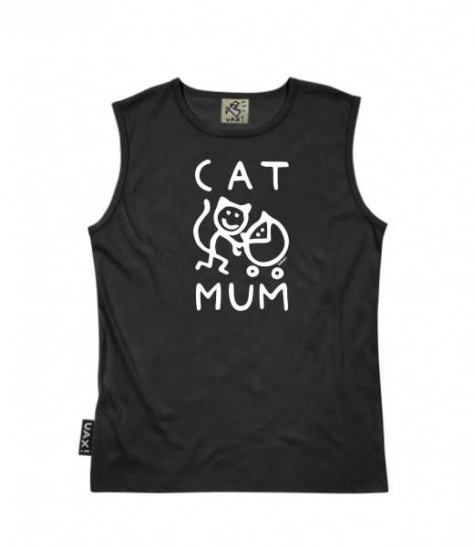 Men's sleeveless MUSCLE SHIRT for man with design 1375 CAT MUM in color BLACK
