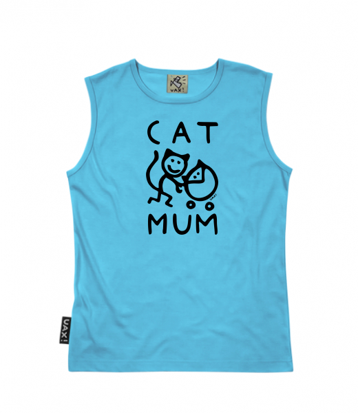 Men's sleeveless MUSCLE SHIRT for man with design 1375 CAT MUM in color BLUE ATOLL