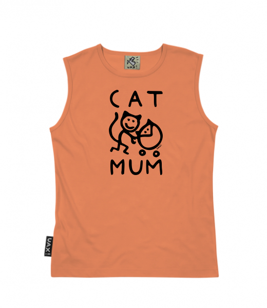 Men's sleeveless MUSCLE SHIRT for man with design 1375 CAT MUM in color MANDARIAN ORANGE