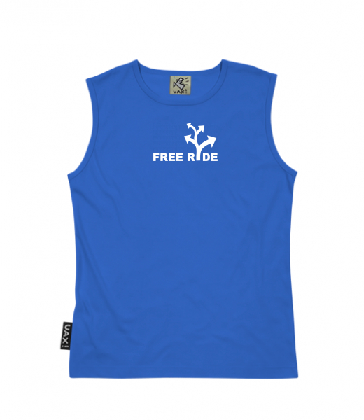 Men's sleeveless MUSCLE SHIRT for man with design 344 FREE RIDE in color ROYAL BLUE