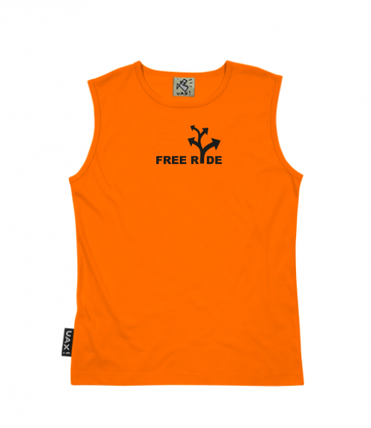 Men's sleeveless MUSCLE SHIRT for man with design 344 FREE RIDE in color SIGNAL ORANGE