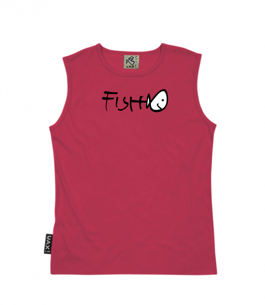 Men's sleeveless MUSCLE SHIRT for man with design 357 FISH in color CHILLY PEPPER RED