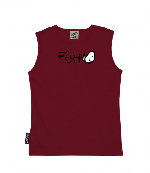 Men's sleeveless MUSCLE SHIRT for man with design 357 FISH in color DARK RED