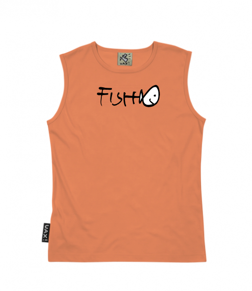 Men's sleeveless MUSCLE SHIRT for man with design 357 FISH in color MANDARIAN ORANGE