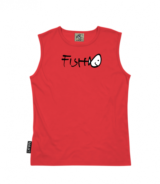 Men's sleeveless MUSCLE SHIRT for man with design 357 FISH in color RED