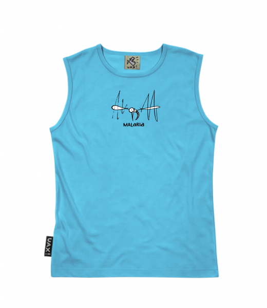 Men's sleeveless MUSCLE SHIRT for man with design 361 MALARIA in color BLUE ATOLL