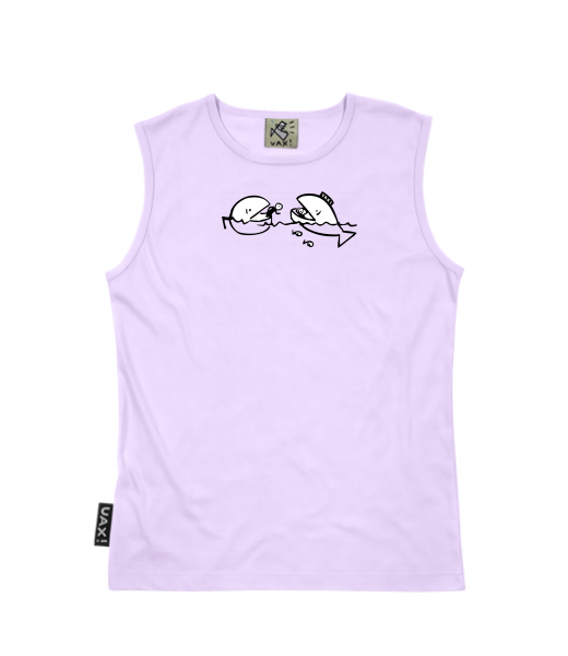 Men's sleeveless MUSCLE SHIRT for man with design 385 FISH TAXI in color LAVENDER