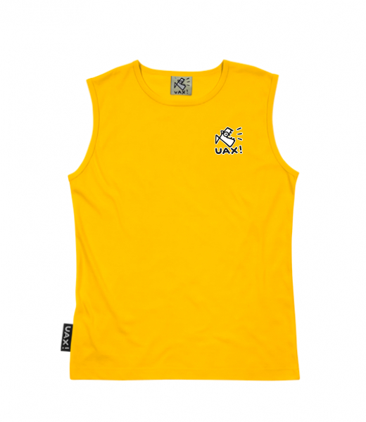 We make sustainable UAX clothing! - hand sewn in the Czech Republic uaxMen uaxAll productsT-shirtsMUSCLE SHIRTdesign 412 - LOGO UAX! SMALLGOLDEN CREAM