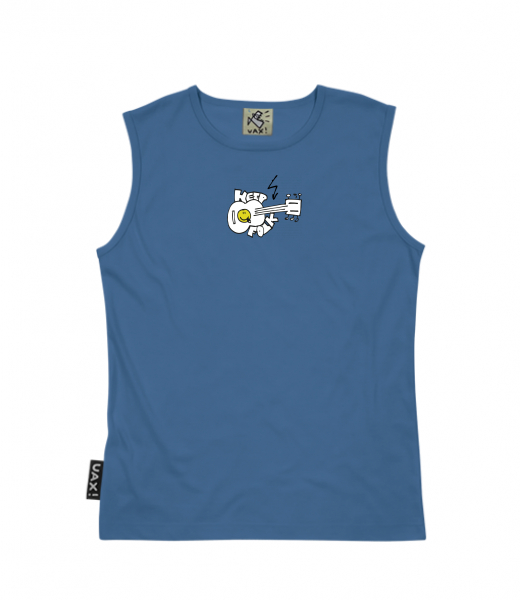 Men's sleeveless MUSCLE SHIRT for man with design 441 KEEP FOLK in color MOONLIGHT BLUE