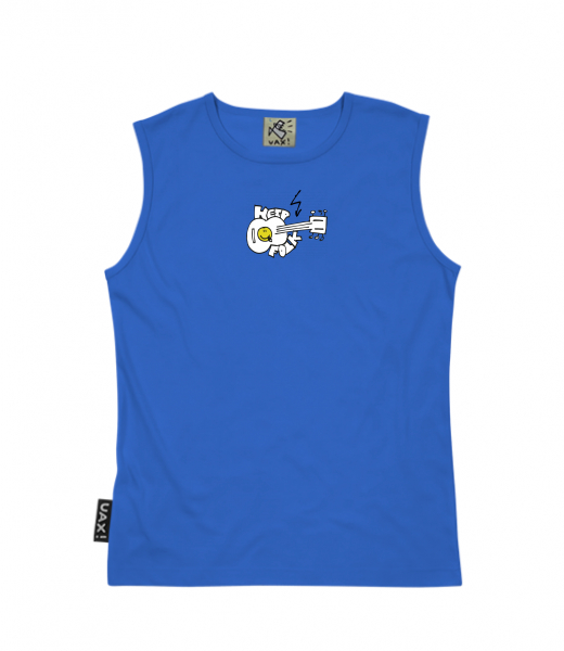 Men's sleeveless MUSCLE SHIRT for man with design 441 KEEP FOLK in color ROYAL BLUE