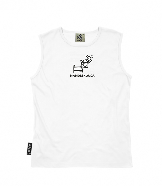 Men's sleeveless MUSCLE SHIRT for man with design 516 NANOSEKUNDA in color WHITE