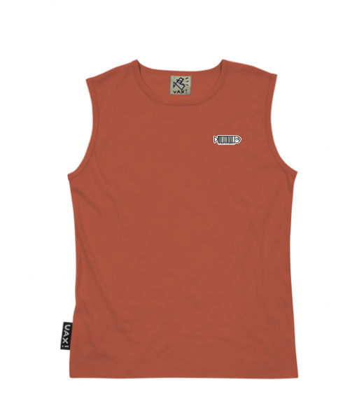 Men's sleeveless MUSCLE SHIRT for man with design 71 FISHBARCODE in color TERRA