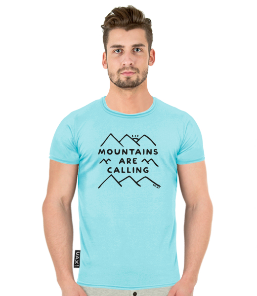 We make sustainable UAX clothing! - hand sewn in the Czech Republic uaxMen uaxAll productsT-shirtsT-SHIRT BALIdesign 1204 - MOUNTAINS ARE CALLINGPASTEL BLUE