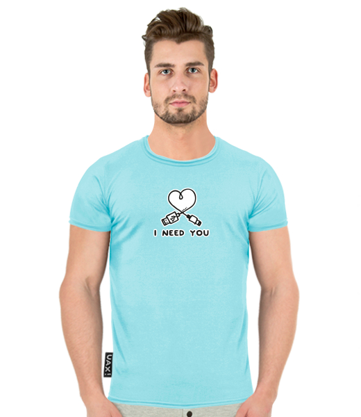 We make sustainable UAX clothing! - hand sewn in the Czech Republic uaxMen uaxAll productsT-shirtsT-SHIRT BALIdesign 1206 - I NEED YOU 2PASTEL BLUE