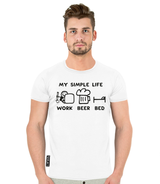 We make sustainable UAX clothing! - hand sewn in the Czech Republic uaxMen uaxAll productsT-shirtsT-SHIRT BALIdesign 1211 - MY SIMPLE LIFE WORK BEER BED