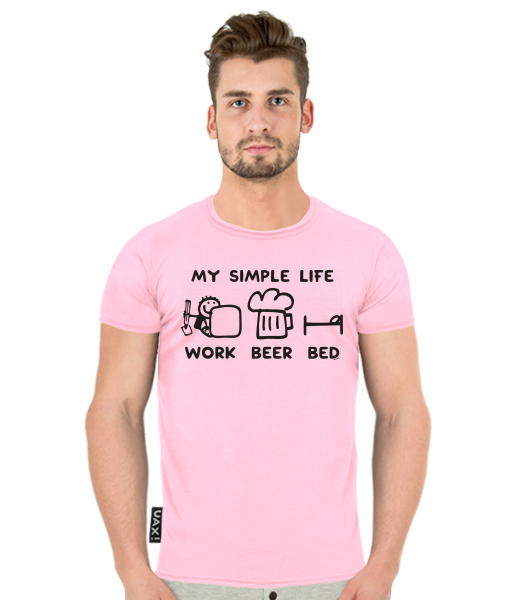 We make sustainable UAX clothing! - hand sewn in the Czech Republic uaxMen uaxAll productsT-shirtsT-SHIRT BALIdesign 1211 - MY SIMPLE LIFE WORK BEER BEDBABY PINK