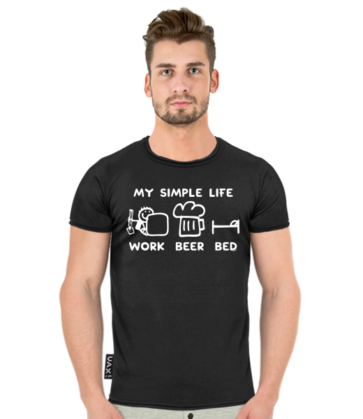 We make sustainable UAX clothing! - hand sewn in the Czech Republic uaxMen uaxAll productsT-shirtsT-SHIRT BALIdesign 1211 - MY SIMPLE LIFE WORK BEER BEDBLACK