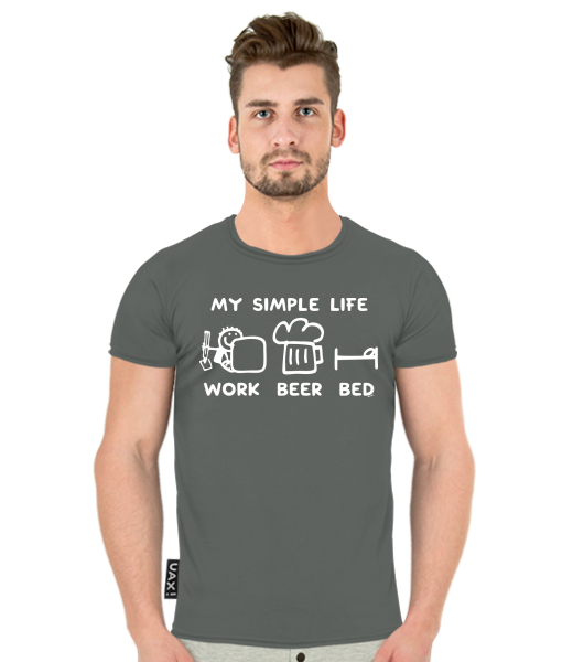 We make sustainable UAX clothing! - hand sewn in the Czech Republic uaxMen uaxAll productsT-shirtsT-SHIRT BALIdesign 1211 - MY SIMPLE LIFE WORK BEER BEDDARK GRAY