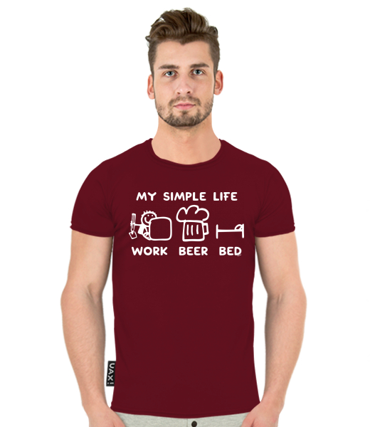 We make sustainable UAX clothing! - hand sewn in the Czech Republic uaxMen uaxAll productsT-shirtsT-SHIRT BALIdesign 1211 - MY SIMPLE LIFE WORK BEER BEDDARK RED