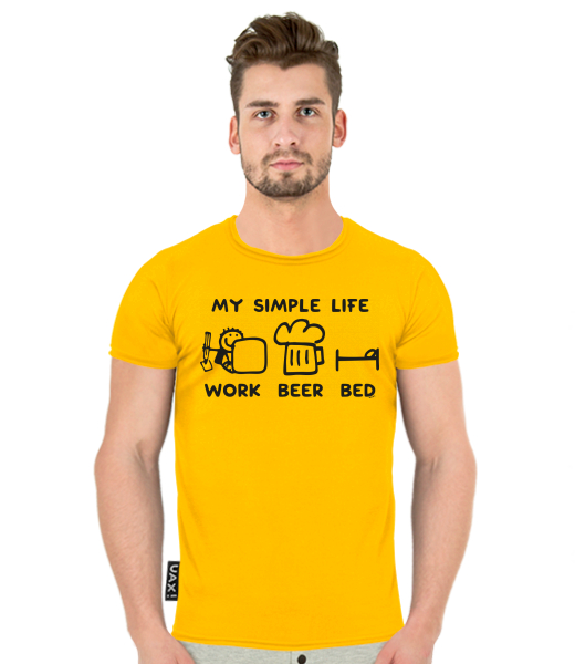 We make sustainable UAX clothing! - hand sewn in the Czech Republic uaxMen uaxAll productsT-shirtsT-SHIRT BALIdesign 1211 - MY SIMPLE LIFE WORK BEER BEDGOLDEN CREAM