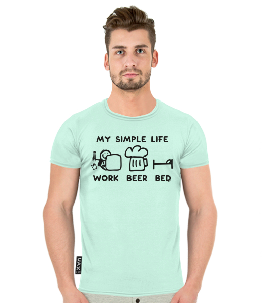 We make sustainable UAX clothing! - hand sewn in the Czech Republic uaxMen uaxAll productsT-shirtsT-SHIRT BALIdesign 1211 - MY SIMPLE LIFE WORK BEER BEDMINT