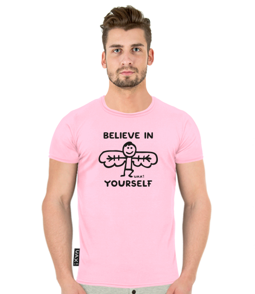 We make sustainable UAX clothing! - hand sewn in the Czech Republic uaxMen uaxAll productsT-shirtsT-SHIRT BALIdesign 1228 - BELIEVE IN YOURSELFBABY PINK