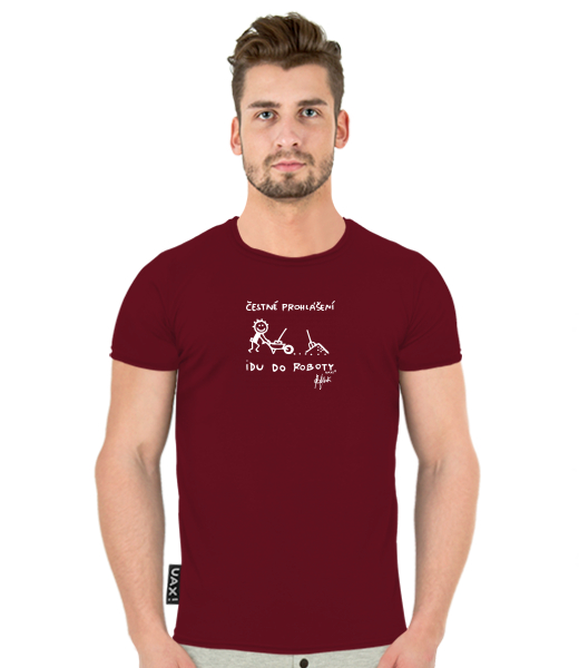 Men's t-shirts BALI for man with design 1303 ČESTNÉ PROHLÁŠENÍ IDU DO ROBOTY in color DARK RED
