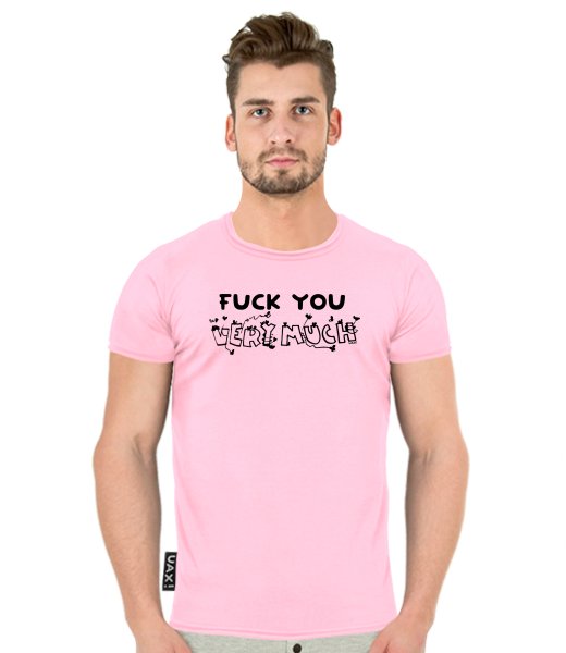 We make sustainable UAX clothing! - hand sewn in the Czech Republic uaxMen uaxAll productsT-shirtsT-SHIRT BALIdesign 1358 - FU VERU MUCHBABY PINK