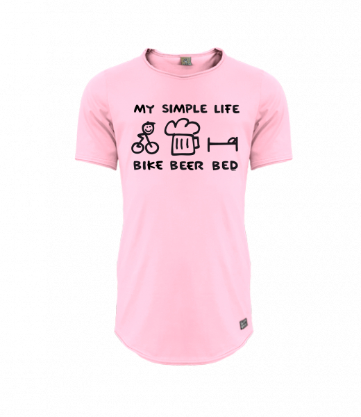 Mens T-shirt PARKOUR LONG for man with design 1056 BIKE BEER BED in color BABY PINK