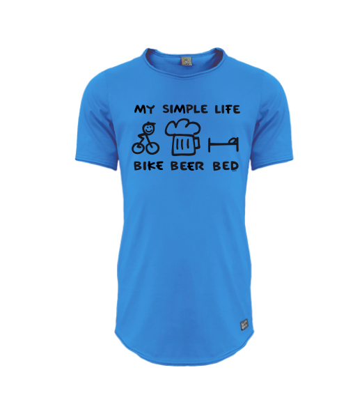 Mens T-shirt PARKOUR LONG for man with design 1056 BIKE BEER BED in color CAPRI BLUE