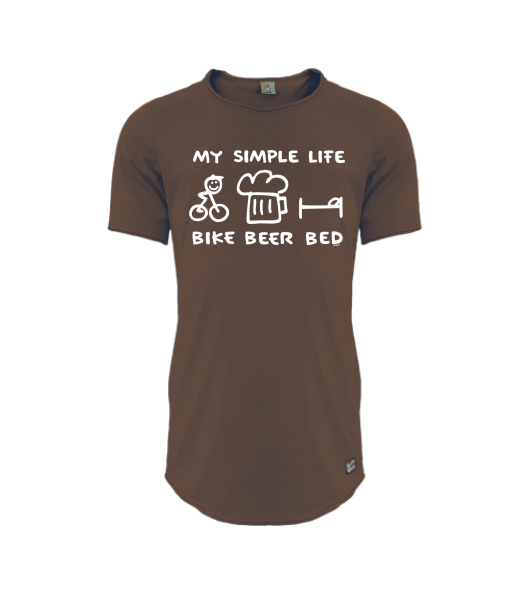 Mens T-shirt PARKOUR LONG for man with design 1056 BIKE BEER BED in color CHESTNUT